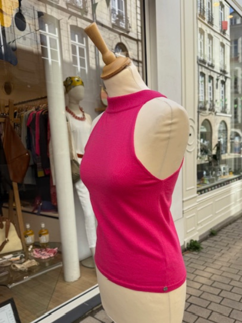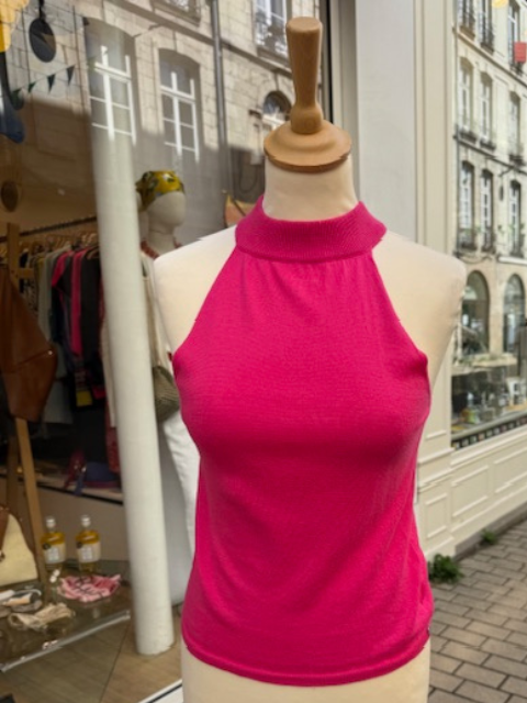 Top dos-nu signé A Poil Cashmere, confectionné dans un mélange raffiné de coton et cachemire. Sa coupe moderne et féminine, à col montant et emmanchures américaines, sublime la silhouette tout en offrant un confort exceptionnel. Matière : mélange coton 85% et cachemire 15%, alliant douceur, légèreté et respirabilité pour un confort inégalé en toute saison Coupe : ajustée, sans manches, col montant, dos-nu pour une allure élégante et contemporaine. Couleur : rose fuchsia pour illuminer vos tenues. Finitions : tricotage délicat, finitions soignées, reflet du savoir-faire artisanal de la maison A Poil Cashmere Fabrication : réalisée au Népal, dans le…