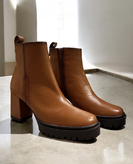 Découvrez nos bottines à talons en cuir camel, subtilement patinées sur les coutures pour un style raffiné. Dotées d’une fermeture par zip intérieur, elles présentent un bout arrondi et une doublure en cuir pour un confort optimal. Leur talon de 6,5 cm, avec un plateau de compensation avant de 1,8 cm, assure une cambrure réelle de 4,7 cm. La semelle crantée noire, du plateau de compensation donne un style contemporain à cette bottine. Votre démarche sera élégante et stable grâce à la semelle intérieure en new gel.