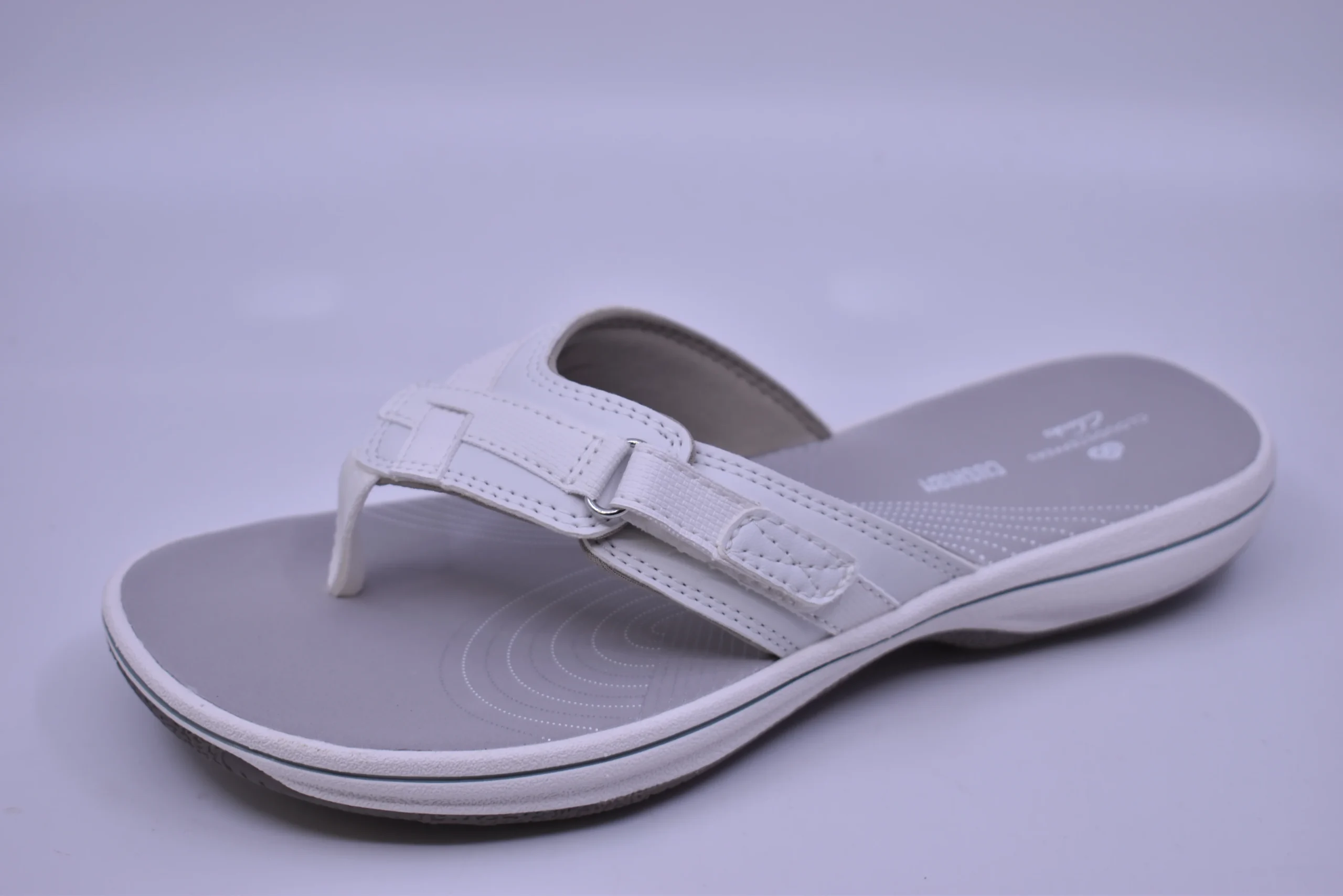 La sandale CLARKS Breeze Sea est légère et confortable. Elle est faite de cuir synthétique. Son velcro sur le côté extérieur permet de l’ajuster au besoin et sa ganse entre les orteils est faite de tissu souple. Sa semelle intérieure Cloudsteppers en EVA absorbe les chocs et sa semelle extérieure est antidérapante.