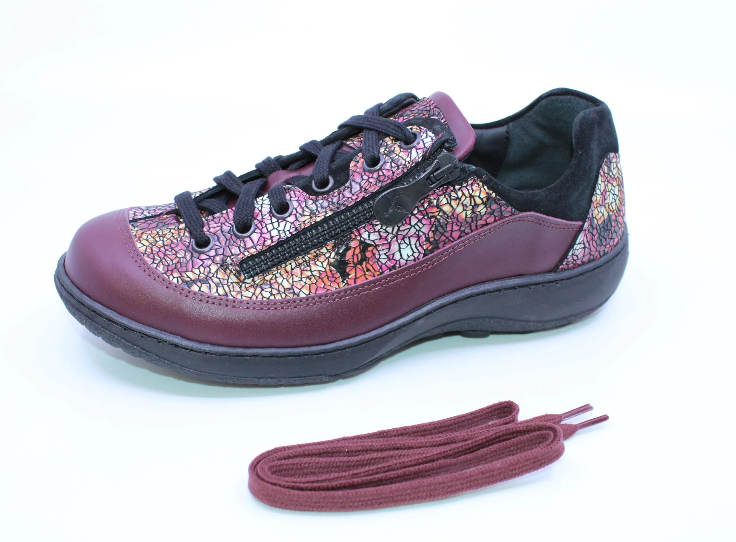 Le soulier orthopédique PORTOFINO DY-46735 est fait de cuir véritable. Son lacet permet de bien l’ajuster à votre pied et le zip de l’enfiler facilement et rapidement. Sa semelle intérieure est amovible pour y insérer votre orthèse au besoin. Sa semelle extérieure en caoutchouc est antidérapante. Largeur : Extra large.